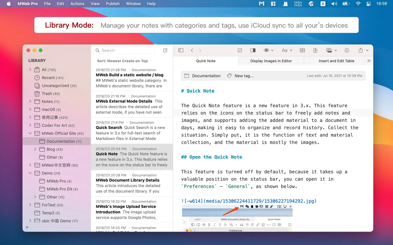 MWeb Pro 是 一款专业的 Markdown 写作、记笔记、静态博客生成软件。